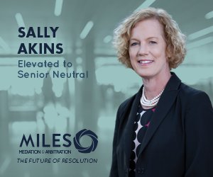 ‘’I’m so pleased that Sally has become a senior neutral.” said John Miles, Jr., CEO of Miles Mediation & Arbitration.